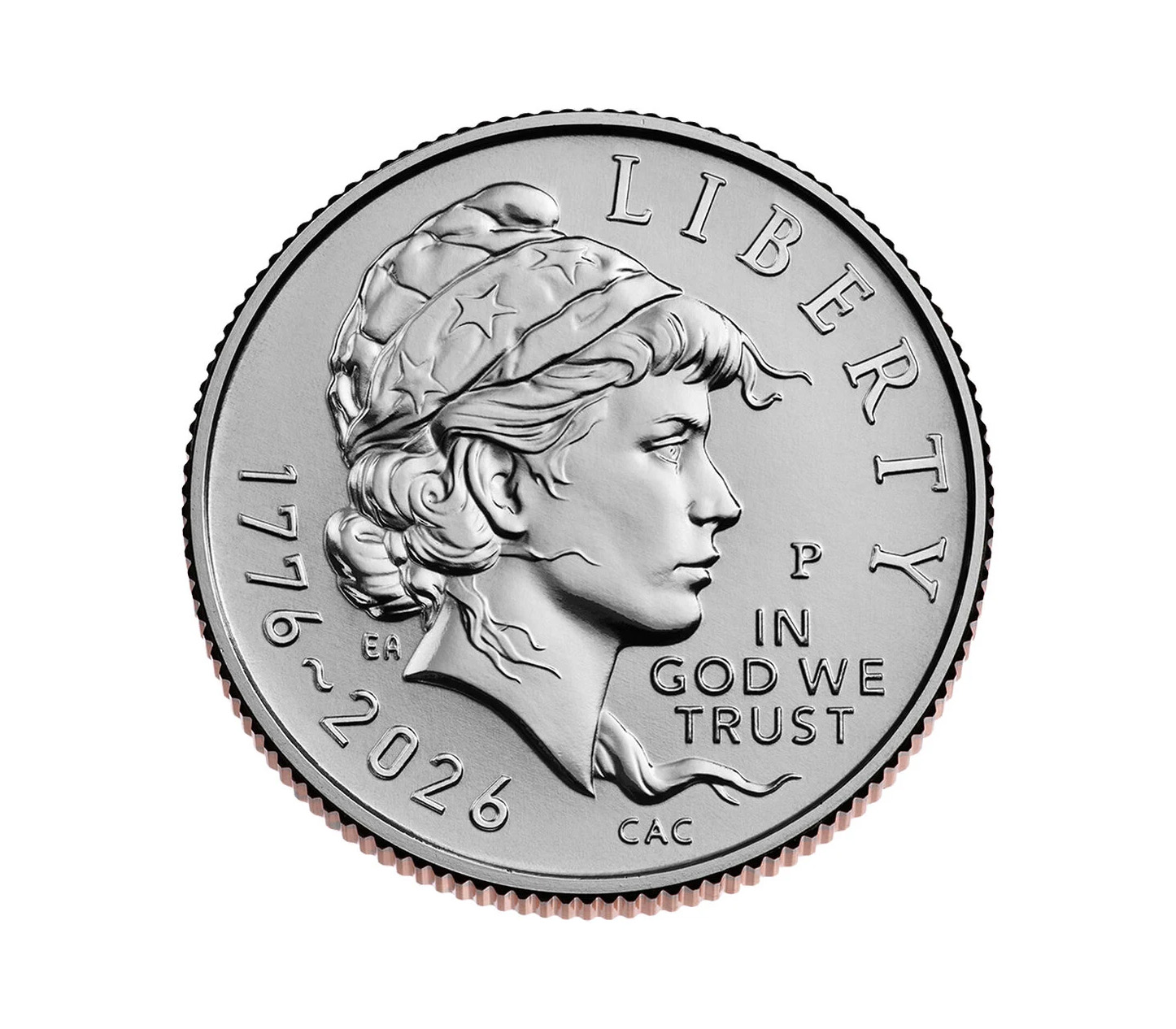 Features a modern, forward-looking depiction of Liberty, symbolizing renewal, hope, and the continuing evolution of the United States. This contemporary design reflects the nation’s diversity and enduring commitment to freedom as it enters its 250th year.